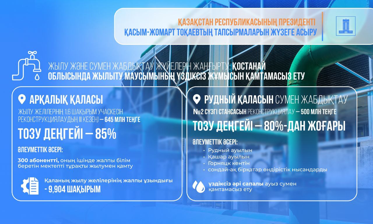 Үкімет қабылдаған жаңғырту шаралары өңірдегі инженерлік инфрақұрылымды едәуір нығайтуға, жылу және сумен жабдықтау нысандарының сенімділігі мен тиімділігін арттыруға, шығындарды азайтуға, тұрғындар мен әлеуметтік маңызы бар нысандарды жылумен және сумен қамтамасыз етуге мүмкіндік береді.