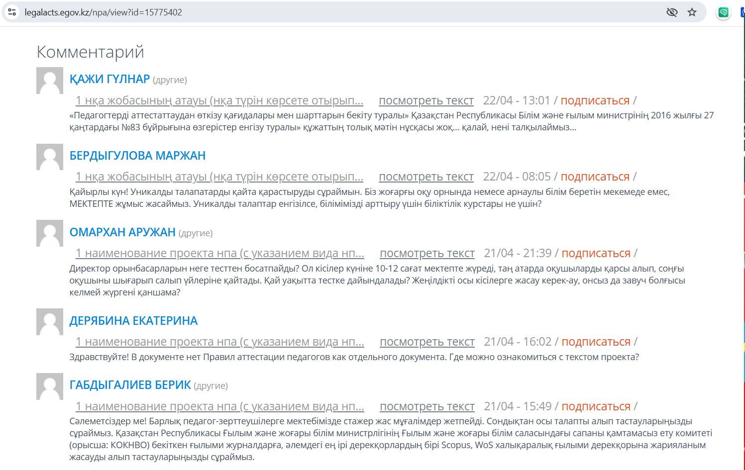 Аттестацияның жаңа ережелері туралы жоба құжаттарын көреміз деген үмітіміз үнсіз сөнді.Себебі, аталмыш порталда жүктелген құжатта түк жоқ еді.