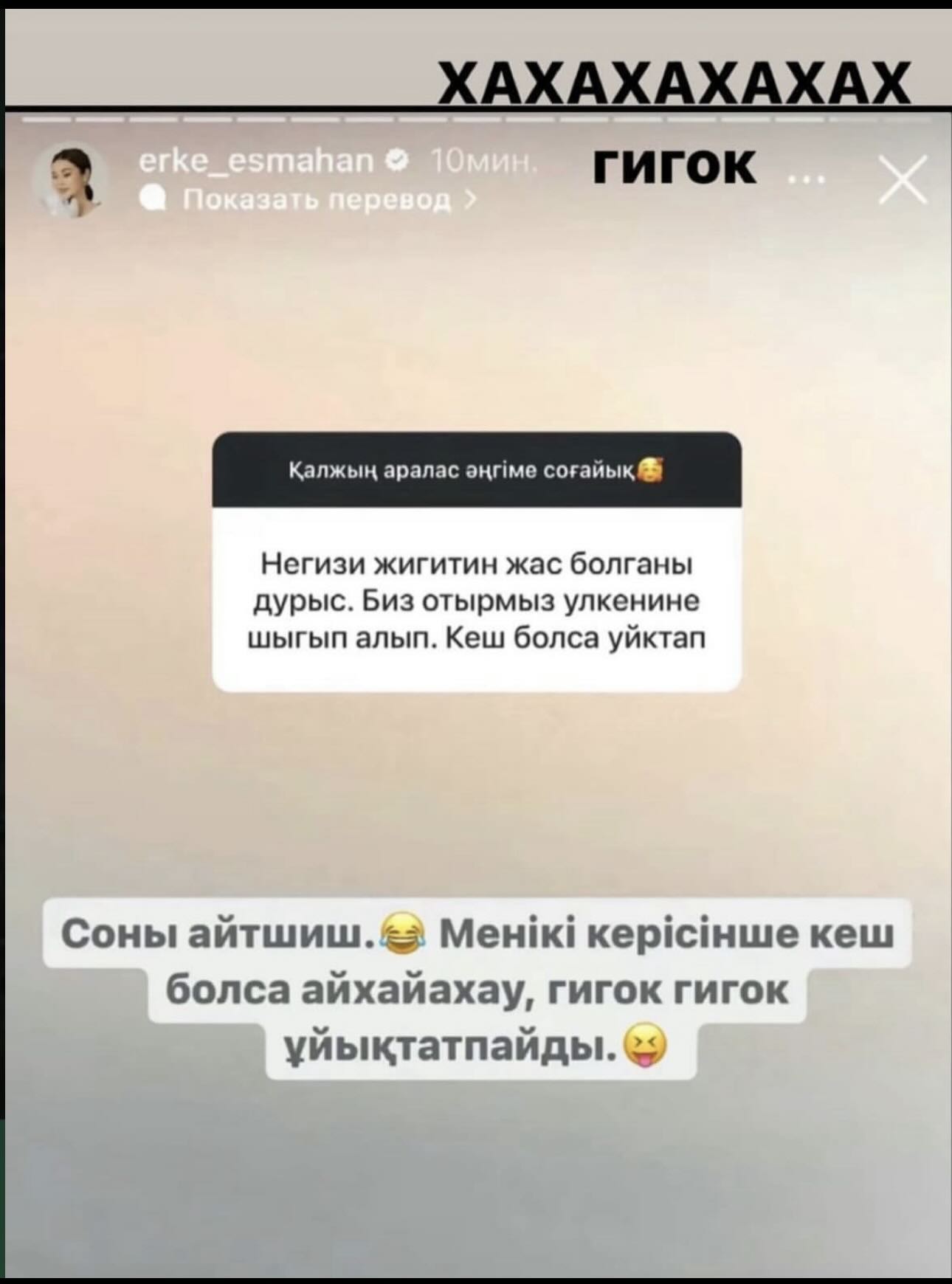 "Бұнын бір елдің білдей әншісі деген статусы бар да негізі, ватсапта подружкалармен айтып жазып отса мейлі, қанша миллион адамы бар ұят ай!