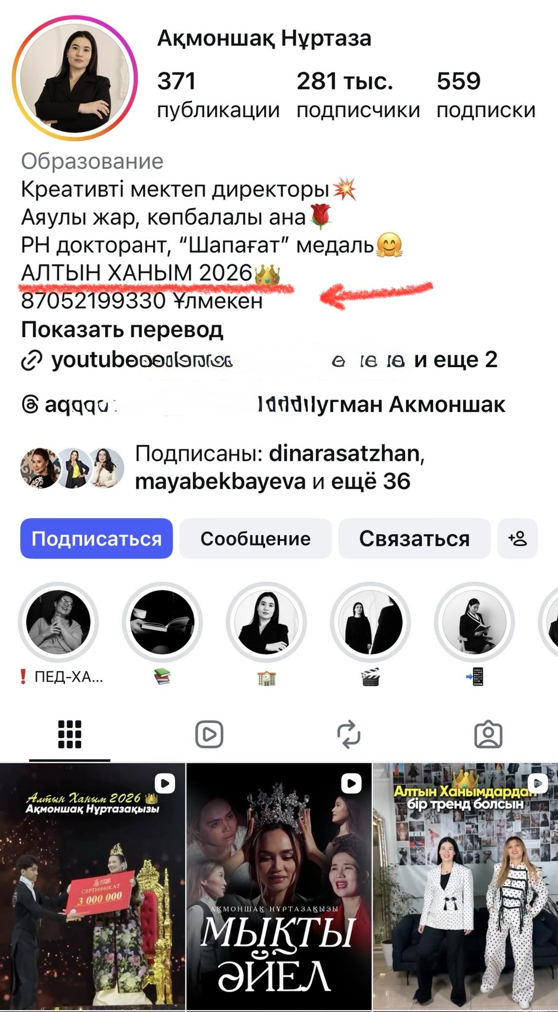 Осы жазбамен бірге жарияланған "Алтын ханым" директордың Инстаграмдағы парақшасындағы деректер жұрттың назарына түсті.