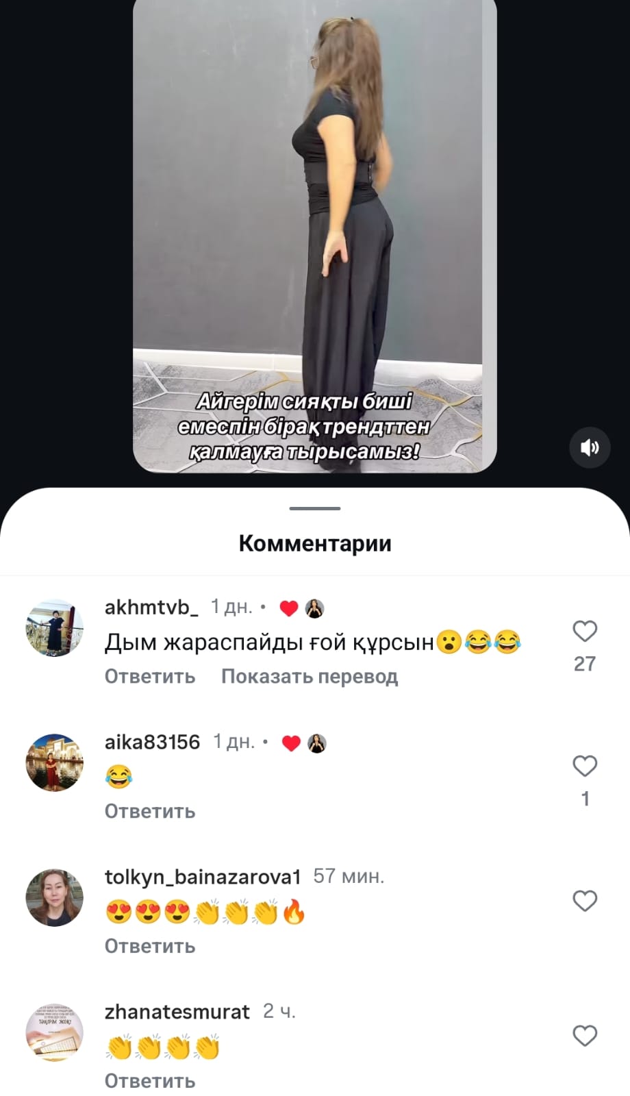 Оқырмандарының бірі "керемет, әдемі биледіңіз", "сізге әдемі жарасып тұр" деп жылы лебізін білдірсе, ал кей оқырмандары "қоя қой", "жараспайды", "семіз үйрек сияқты", "ужас болды" деп жазуда.