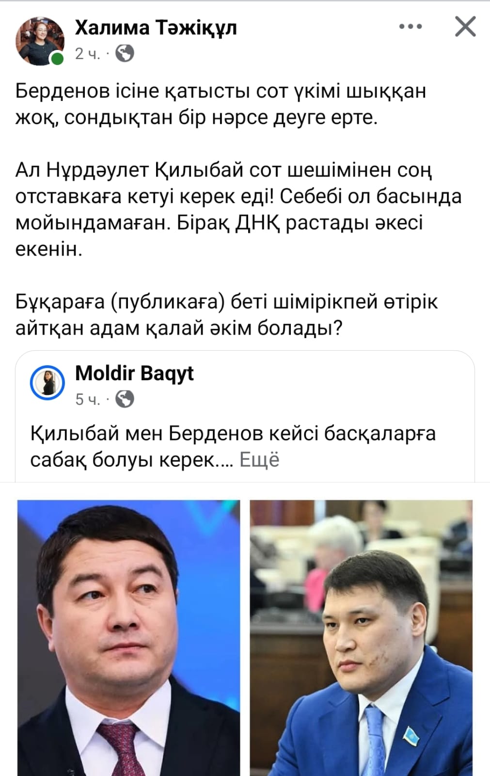 Ал Берденов кейсіне келсек. Мүмкін жала. Мүмкін кей детальдары рас. Бөтен әйелге лайк басып, пікір жазудың өзі араға от салатынын осы оқиғадан көріп отырмыз(айыпталушының мәлімдемесі).