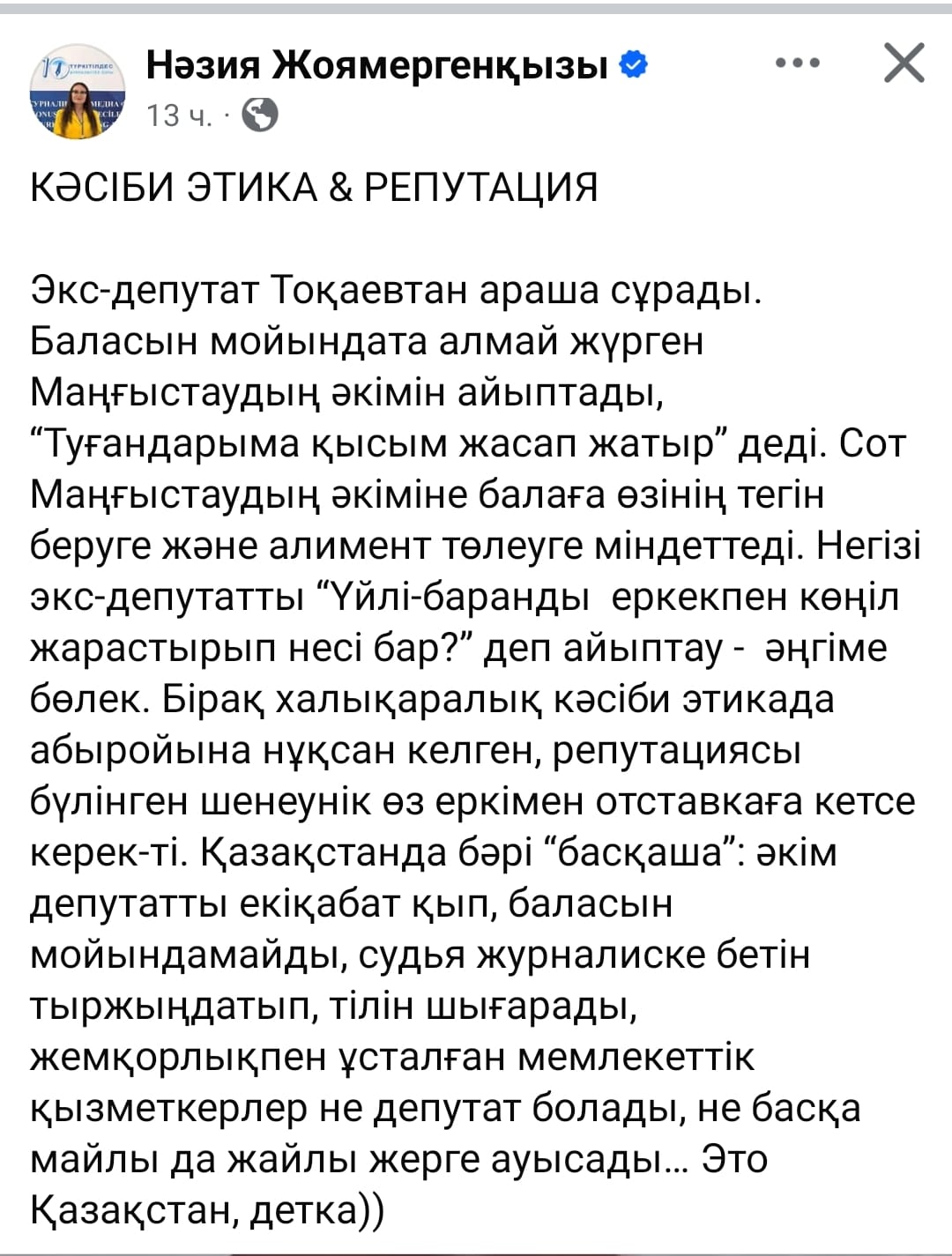 Осыған ұқсас пікірді танымал журналист