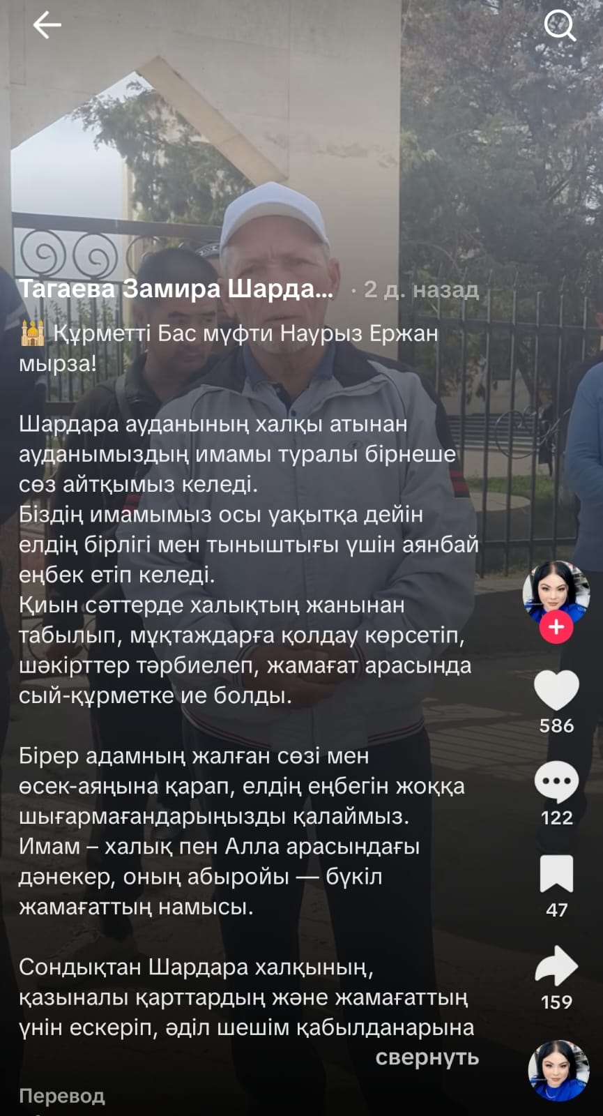 Сондықтан Шардара халқының, қазыналы қарттардың және жамахаттың үнін эскеріп, әділ шешім қабылданарына сэнім білдіреміз" деген жазбамен видео жариялаған ауыл тұрғындары Қазақстанның "бас мүфтиі Наурыз Ержан мырза" деген адамға өтініш жасады.
