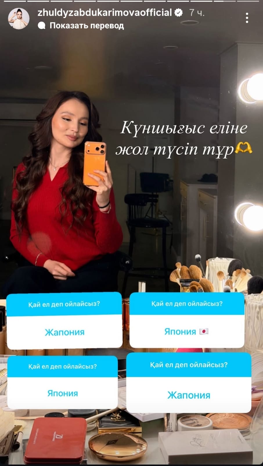 Бірі Америка десе, енді бірі Сирия депті. Сторисінде соларға жауап берген Жұлдыз таяуда Жапонияға кеткелі жатқанын айтты.
