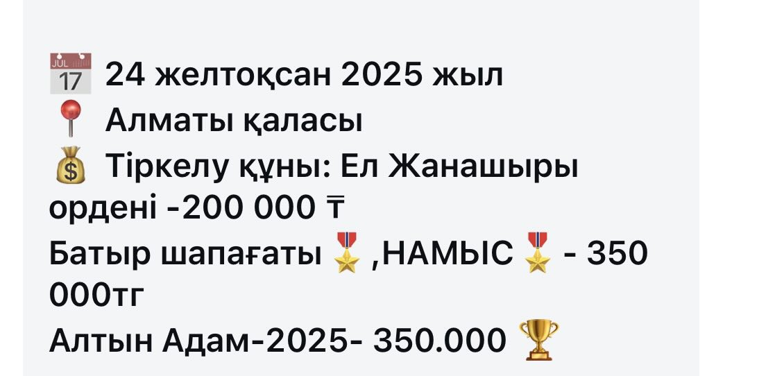 Threads желісінде Ақсұлтан Қали атты желі қолданушы түрлі марапаттардың сатылып жатқанын айтып, тіпті прайс парақшасын да жариялады.
