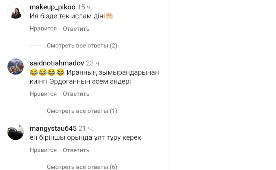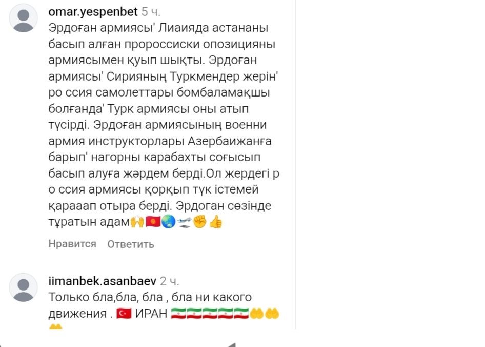 Ердоған бейдің бұл сөзі Қазақстандағы кей діншілдердің делебесін қоздырғаны сонша, "жарайсың!", "өте дұрыс!", "Алла жолында басымызды біріктірейік!", "дініміз бір Ислам. Ислам үшін, алға!" Деп өрекпіп, әлеуметтік желіде тоқтаусыз пікір жазып жатқандар көбейді.