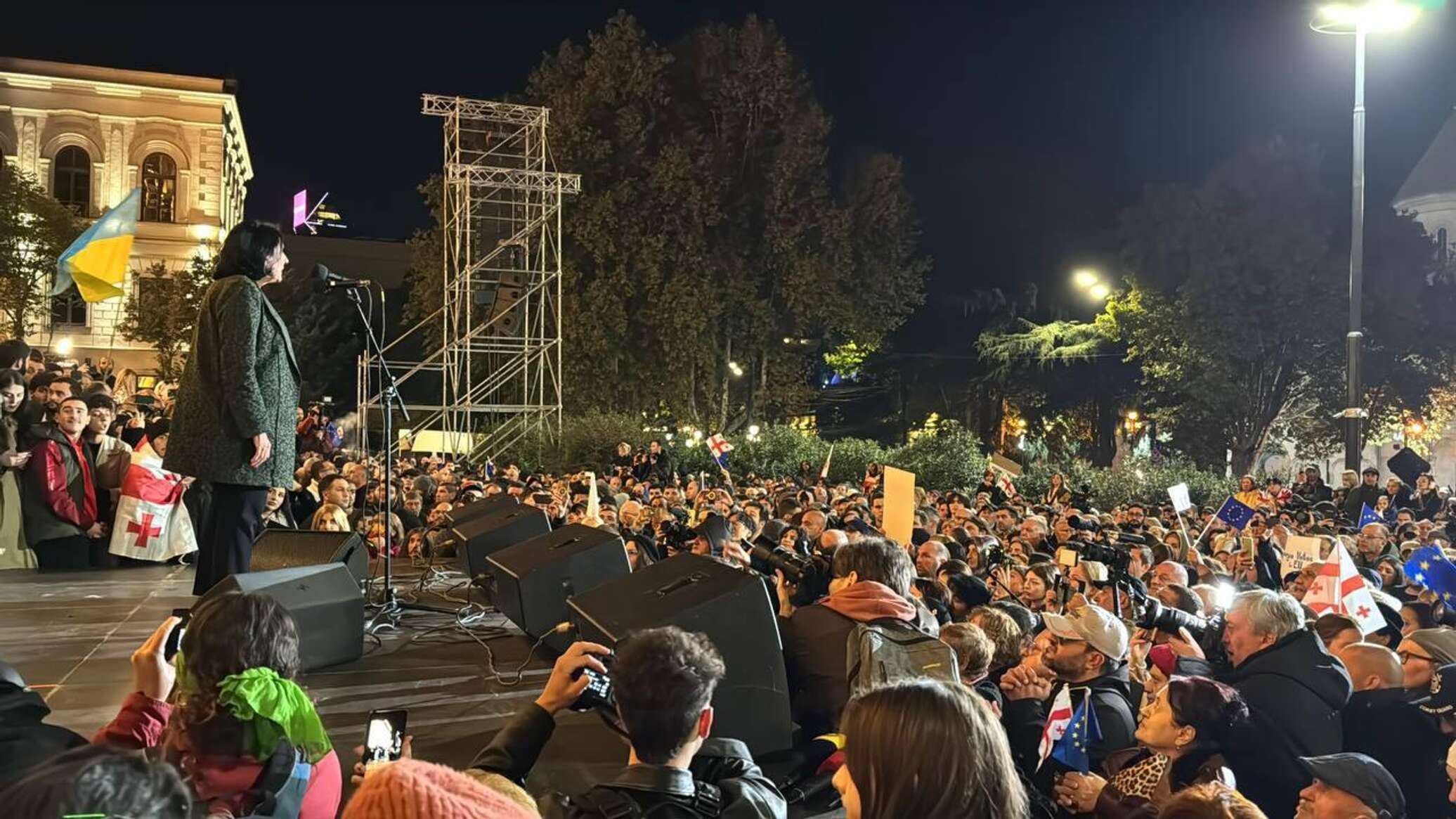 Митингіге Грузия президенті Саломе Зурабишвили де қатысты. Ол сайлау нәтижелерін мойындаудан бас тартып, негізгі оппозициялық партияларды біріктіру туралы бастама көтерді.