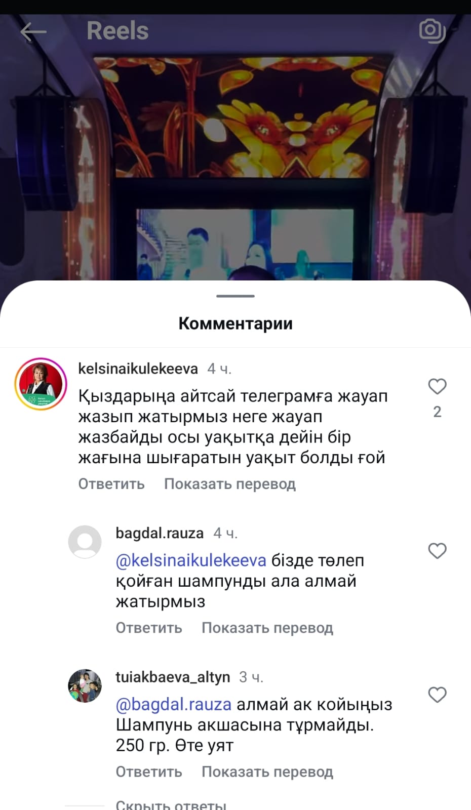 Енді сол шампуньге алдын ала ақшасын жіберіп, бірақ бүгінге дейін тауарын ала алмай отырғандар Гүлзира ханымның парақшасындағы әр посттың астына жазуда.