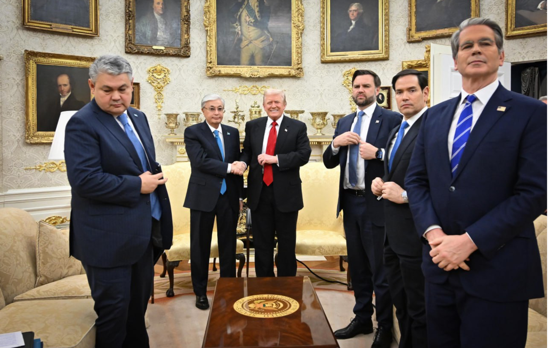 Ақорданың баспасөз қызметі Мемлекет басшысы Қасым-Жомарт Тоқаевтың АҚШ Президенті Дональд Трамппен кездесу үшін Ақ Үйге келгені жайлы бейне мен суреттерді жариялады.