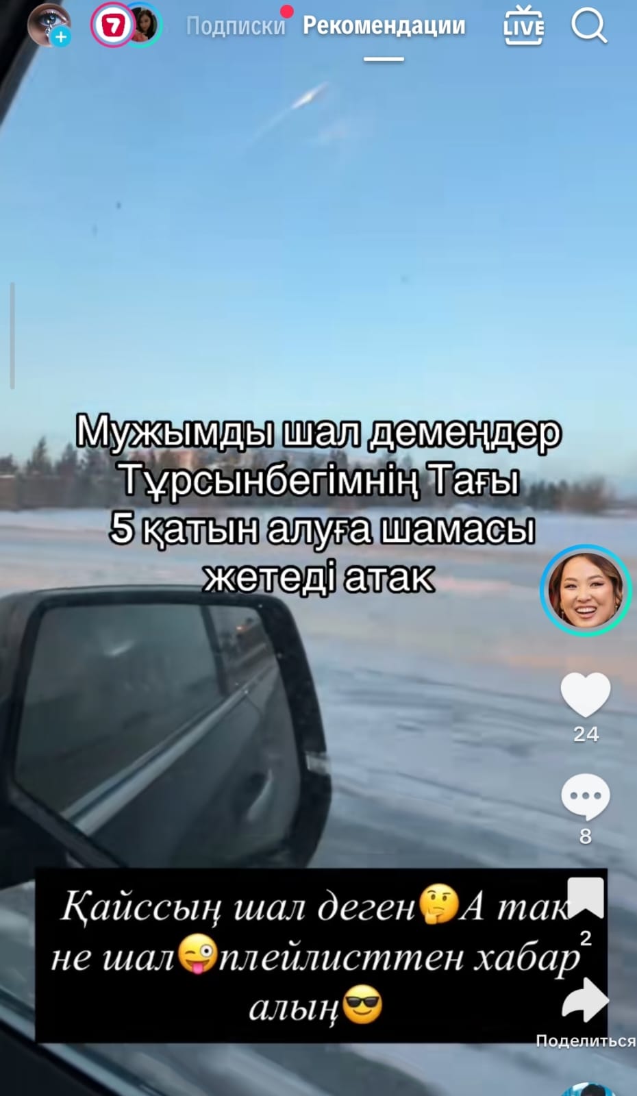 Мұнан бөлек, ол парақшасында "менің мужымды кім шал деп жүр? Шал емес, плэйлисттен хабар алың" деген жазбамен тағы бір фото бөлісті.