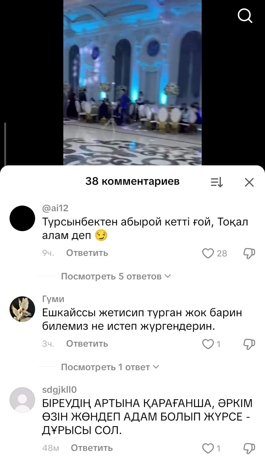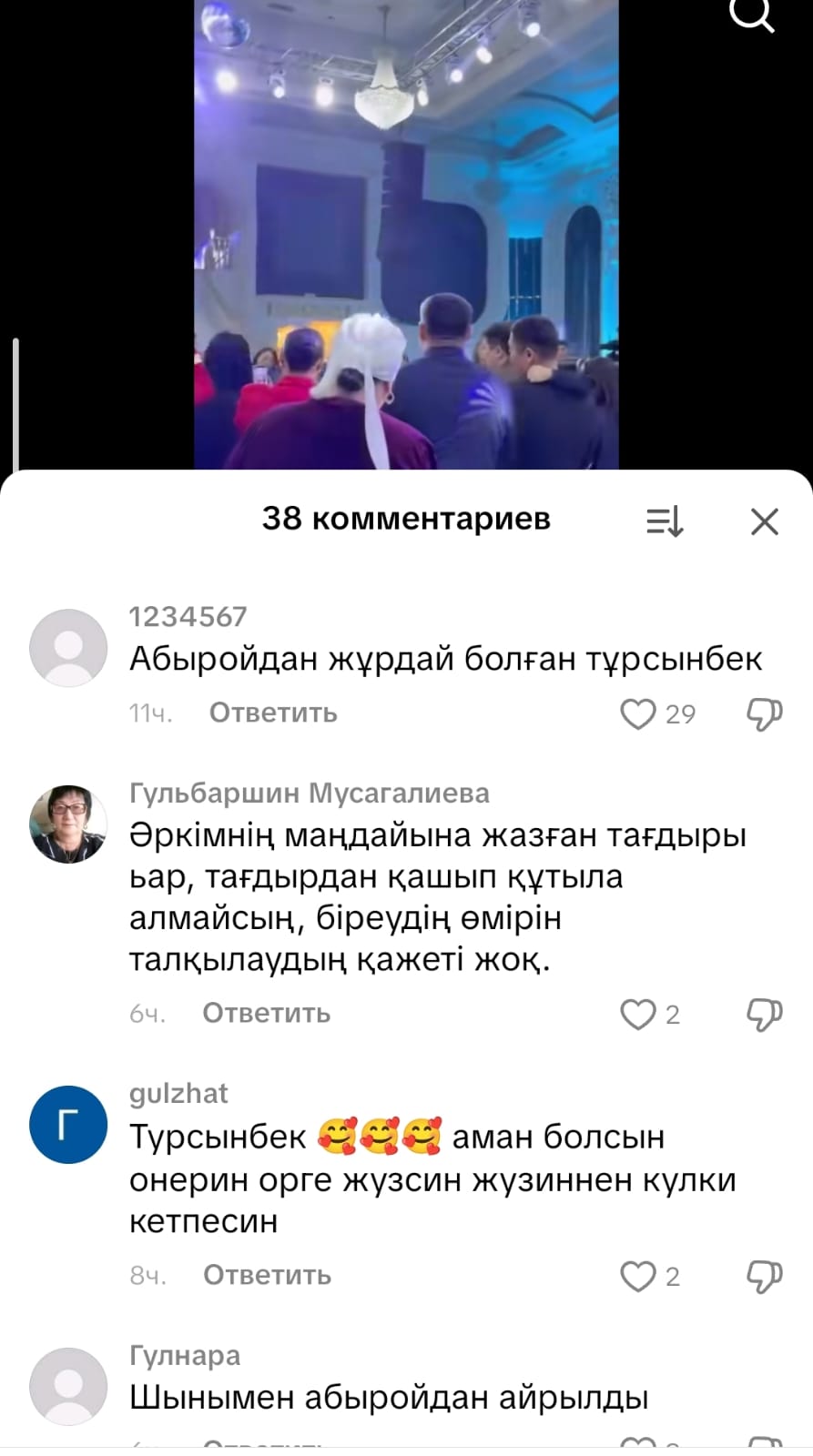 Аталмыш видеода басқа ештеңе де жоқ. Алайда видеоның астына жазылған пікірлер... Басым бөлігі "Тұрсынбекте абырой қалмады", "Тұрсынбектің абыройын тоқалы төкті" дегенге саяды.