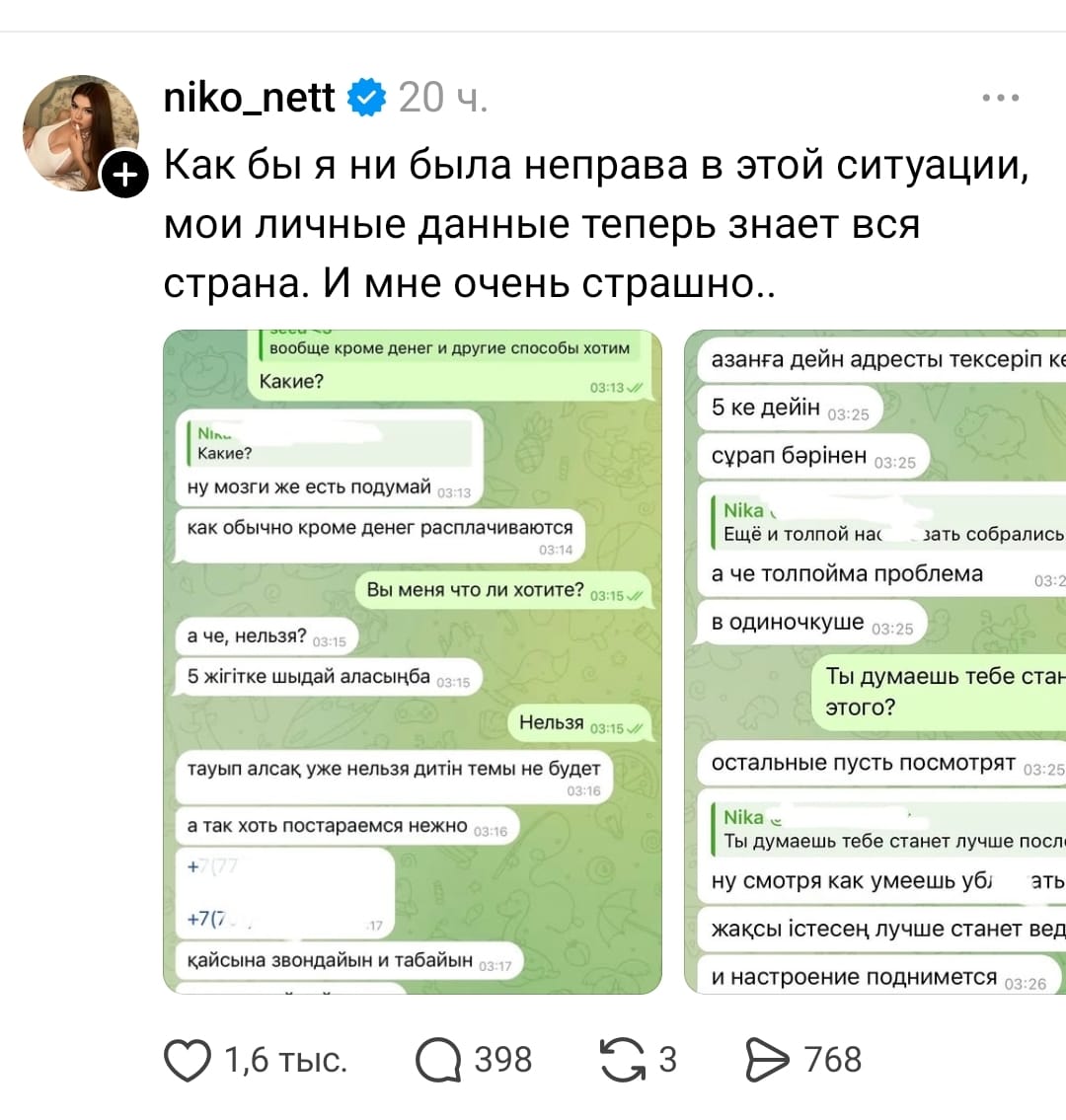 Қазақстандық трансгендер Никонет өзіне жігіттердің жазған жазбаларын жариялады деп жазады Democrat.kz.