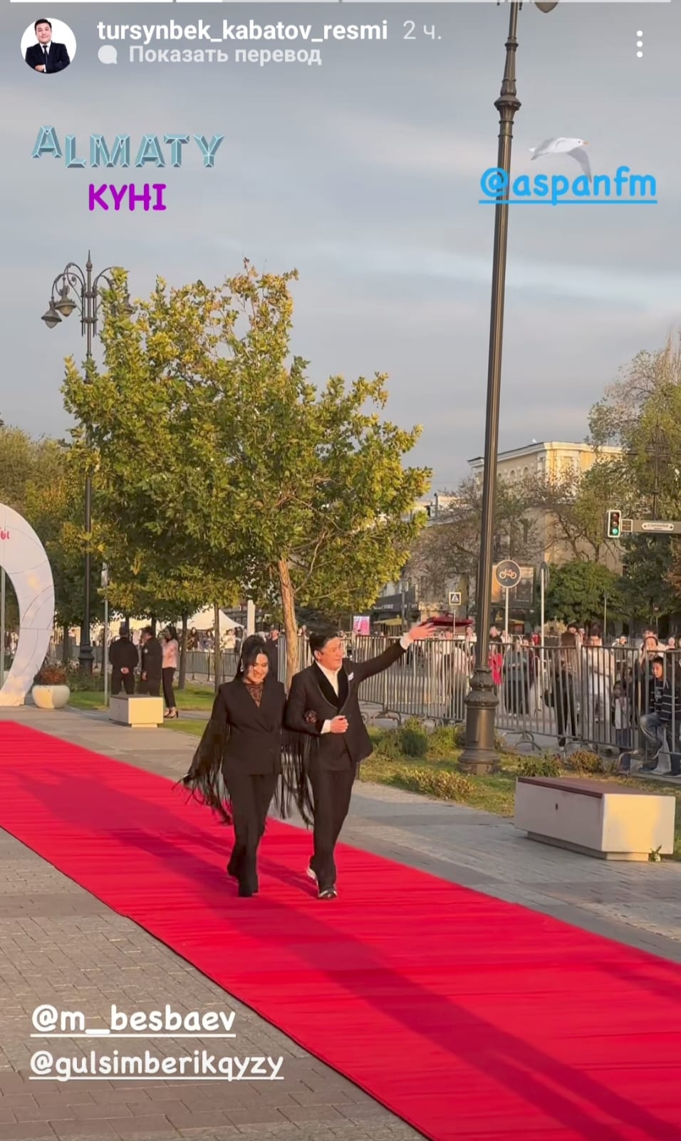 Кәдімгі, ресми жұбайлар секілді екеуі қолтықтасып келді. Сол видеоны Тұрсынбек сторисінде бөлісті.